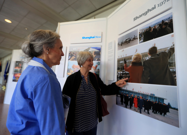 People visit the photo exhibition entitled Building a New Bridge: President Nixon’s Legacy in Three Chinese Cities in Yorba Linda, California, the United States, on January 23, 2018 (XINHUA)