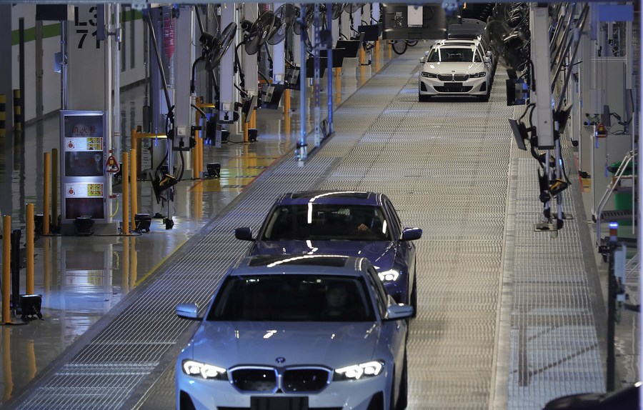BMW i3 electric cars are pictured during the inauguration ceremony of Plant Lydia of BMW Brilliance Automotive (BBA) in Tiexi District of Shenyang, northeast China’s Liaoning Province, Jun. 23, 2022. (Photo/Xinhua)