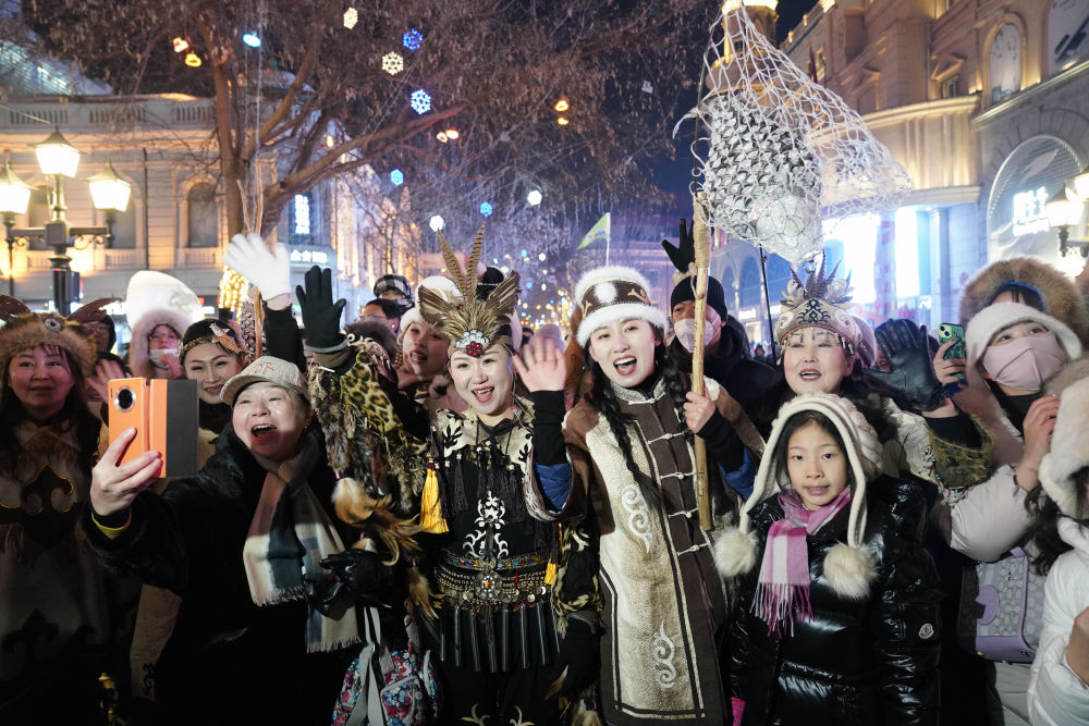 Some of the ethnic groups in the northeast, including Oroqen, dwelling in the northern forests, and Hezhe, mainly living by hunting and fishing in the plain, have also been invited to Harbin to showcase their traditional clothing and cultural performances, offering a glimpse into their unique heritage.