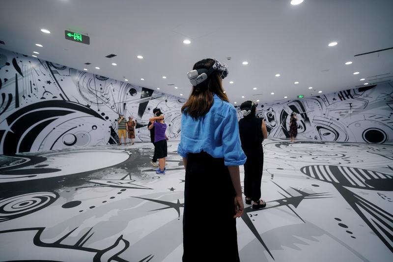 People experience “Three-Body” VR adventure in the Three-Body Four-Dimensional Space, the world’s first offline experience facility recreating the Three-Body universe, in Chengdu, capital of southwest China’s Sichuan Province, Sept. 22, 2024. (Photo/Xinhua)