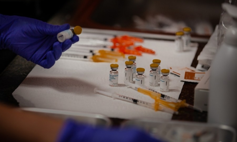 A medical worker gives a dose of monkeypox vaccine to a recipient in Chicago, the United States, Jul. 25, 2022. (Photo/Xinhua)