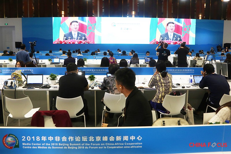 More than 1,000 journalists from home and abroad watched President Xi’s speech at the Media Center of FOCAC Summit at the Beijing International Hotel. They were in deep concentration and seemed deep in thought when Xi made the remarks.