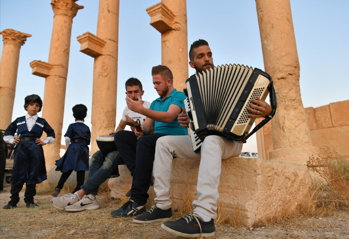 A band performs at a concert in celebration of the government’s victory over ISIS militants in Palmyra, Syria, on August 30 (XINHUA)