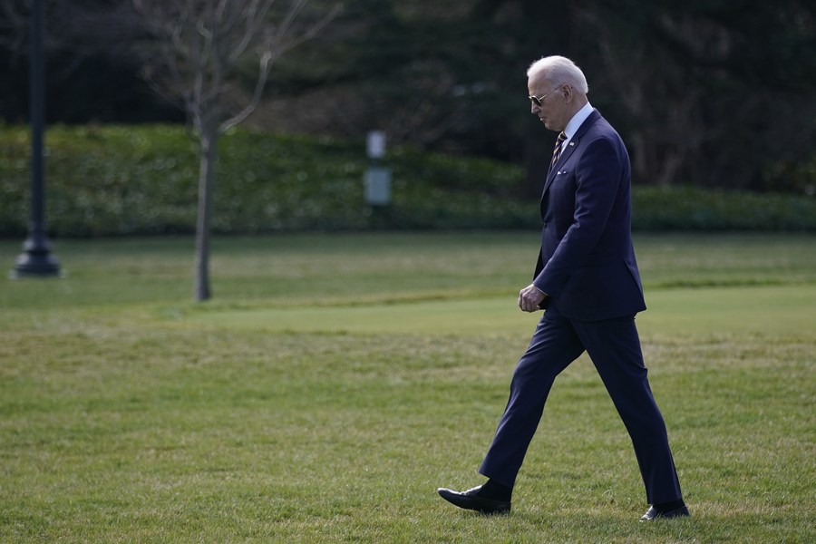 U.S. President Joe Biden leaves the White House in Washington, D.C. Mar. 8, 2022. (Photo/Xinhua)