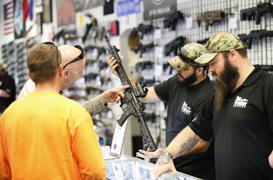 People purchase firearms in a gun shop in Las Vegas, the United States, on Oct. 4, 2017. (Photo/Xinhua)