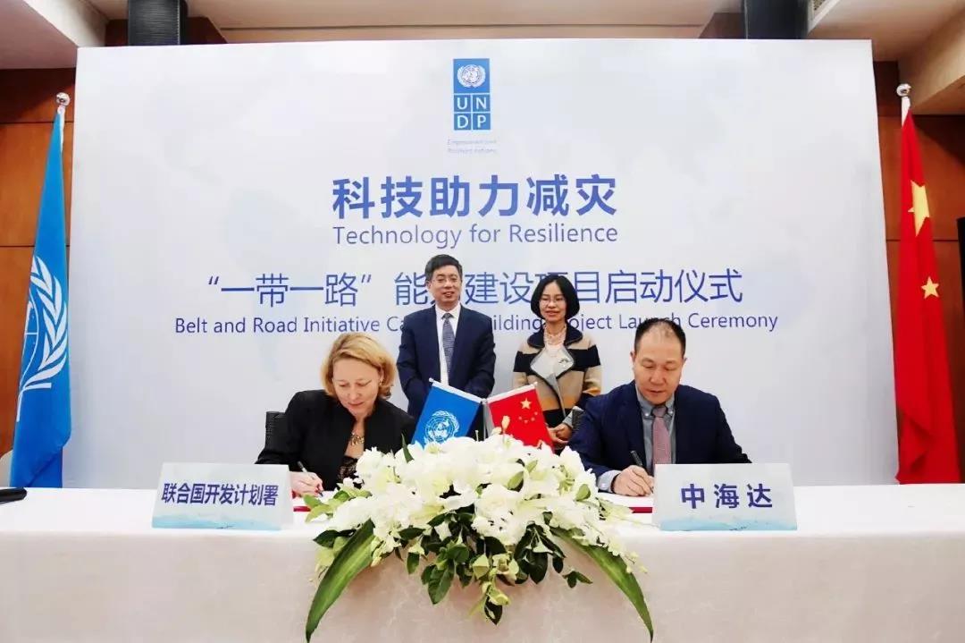 The UNDP launched the “Technology for Resilience — Belt and Road Capacity Building project” in Beijing. The picture shows the signing ceremony on October 24, 2018.