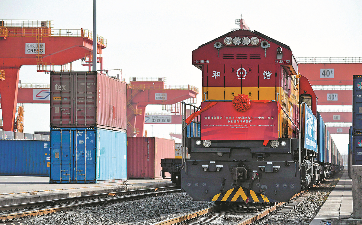 A ceremony is held in Xi’an, Northwest China’s Shaanxi province, in late 2020, to celebrate the opening of Turkey’s first freight train to China. (Photo/Xinhua)