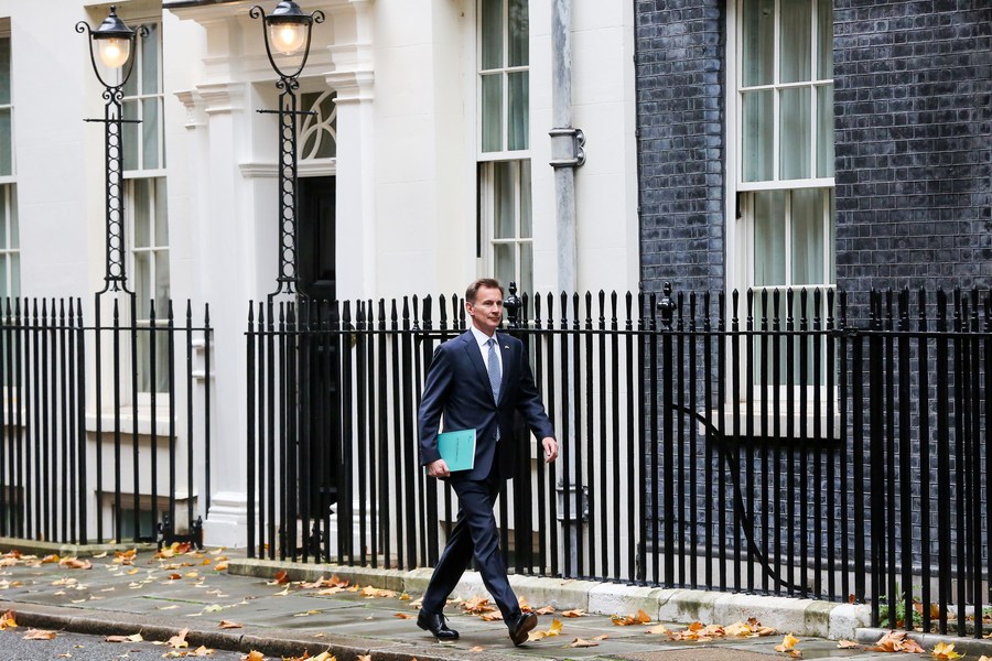 U.K. Chancellor of the Exchequer Jeremy Hunt leaves 11 Downing Street in London, Britain, on Nov. 17, 2022. (Photo/Xinhua)