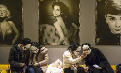 Chinese moviegoers in stormtrooper masks check their phones (presumably not for spoilers) as they wait for Star Wars: The Force Awakens to premiere on January...