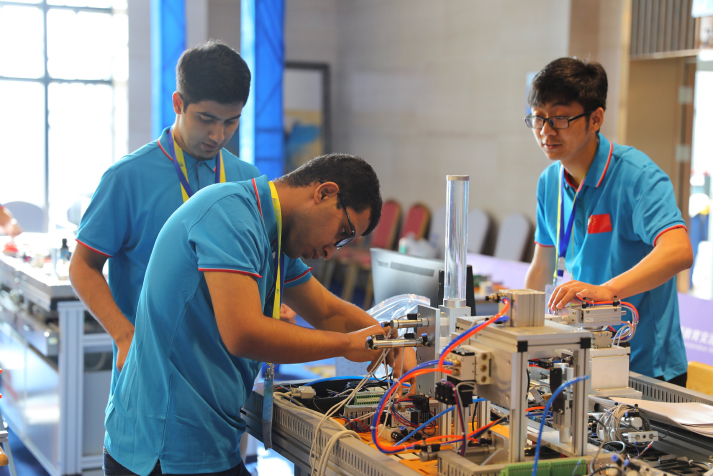 Δ?Students from China and ASEAN nations participate in a competition for vocational skills on July 26 in Guiyang, capital city of southwest China’s Guizhou Province (XINHUA)