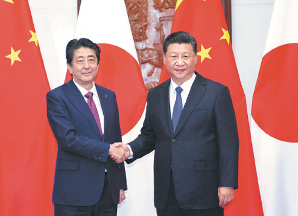 Δ?President Xi Jinping meets with Japanese Prime Minister Shinzo Abe in Beijing on Oct. 26th. Li Tao / Xinhua