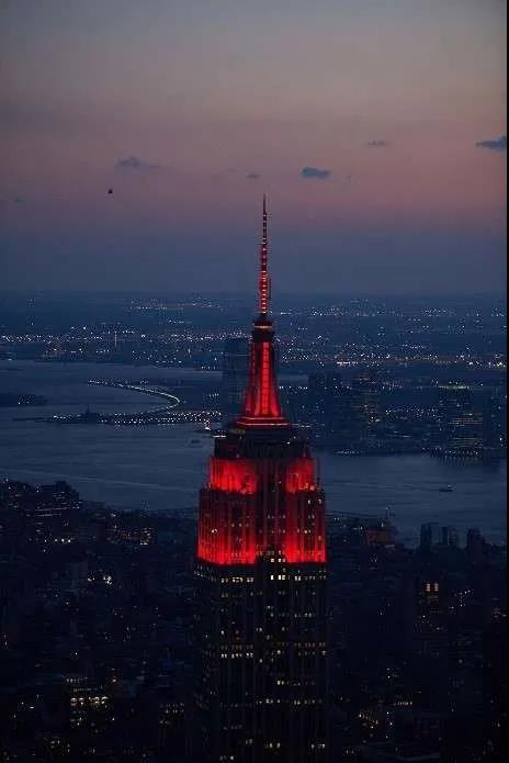 New York’s Empire State building switched its tower lights to red to honor the Chinese Lunar New Year on Feb.12, 2021. (Photo/Chinese Consulate General in New York)