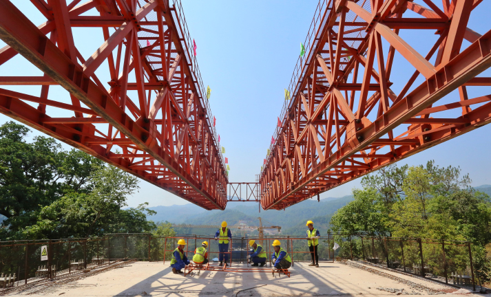 The Mu Nai River Double-Line Bridge, part of the China-Laos Railway, under construction in Pu’er, Yunnan Province in southwest China, on April 27, 2019 (XINHUA)