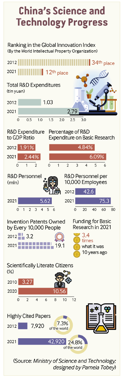 The value of technology contracts in China in 2021 was 5.8 times that of 2012, accounting for 3.26 percent of GDP. The proportion of scientifically literate citizens in the country increased from 3.27 percent in 2010 to 10.56 percent in 2020.
