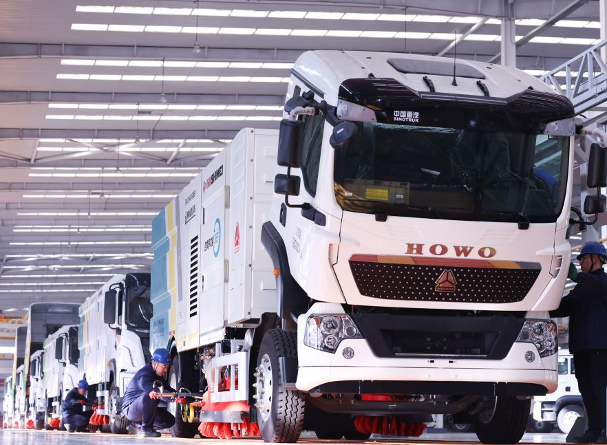 Workers assemble a new energy sanitation vehicle at a company in Shijiazhuang, north China’s Hebei Province, Dec. 15, 2025. (Photo/Xinhua)