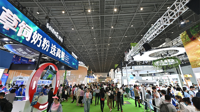 Booths of milk powder makers from New Zealand at the third China International Consumer Products Expo (CICPE) in Haikou, south China’s Hainan Province, Apr. 12, 2023. (Photo/Xinhua)