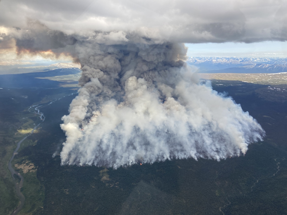 Aerial photo taken on Jun. 24, 2023 shows wildfires near Tomias Mountain, British Columbia, Canada. (Photo/Xinhua)