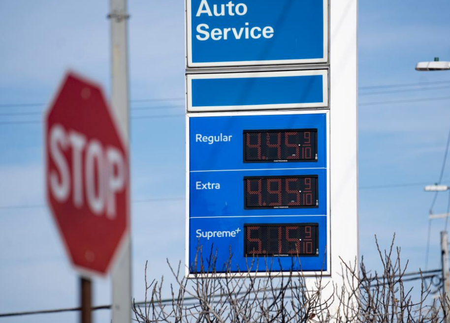 Photo taken on Mar. 8, 2022 shows a price board of a gas station in Arlington, Virginia, the United States. The U.S. (Photo/Xinhua)