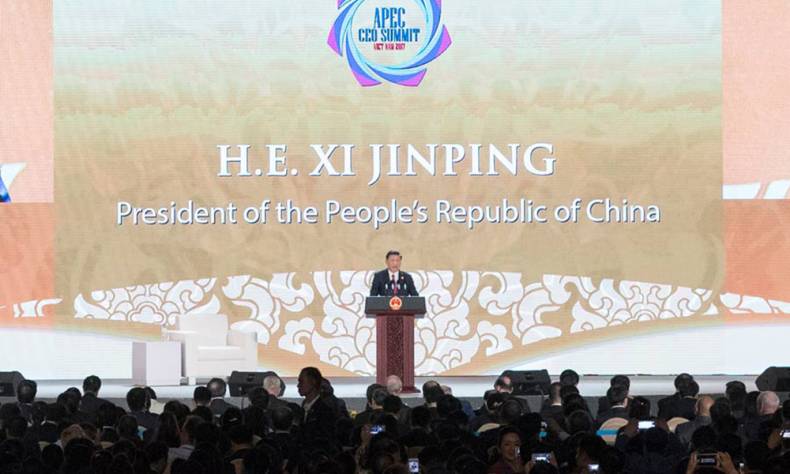 President Xi Jinping sent a strong message of pursuing open global economies, supporting free trade and building a multilateral trade system in a highly anticipated speech delivered at the APEC CEO Summit in Vietnam.