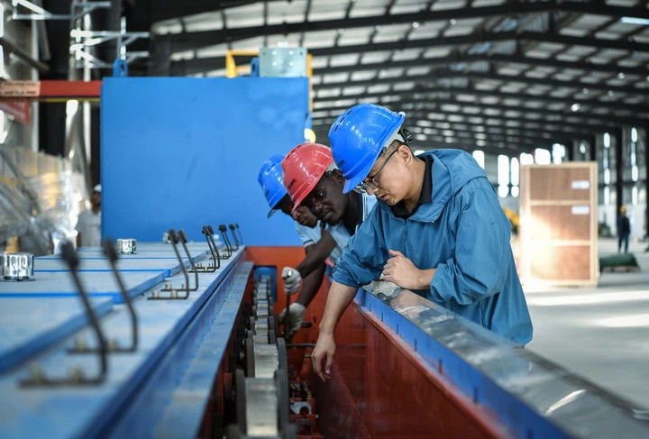 Workers operate on a production line at the Zambia Jiangxi Economic Cooperation Zone in Chibombo, Zambia, on Mar. 26, 2025. (Photo/Xinhua)