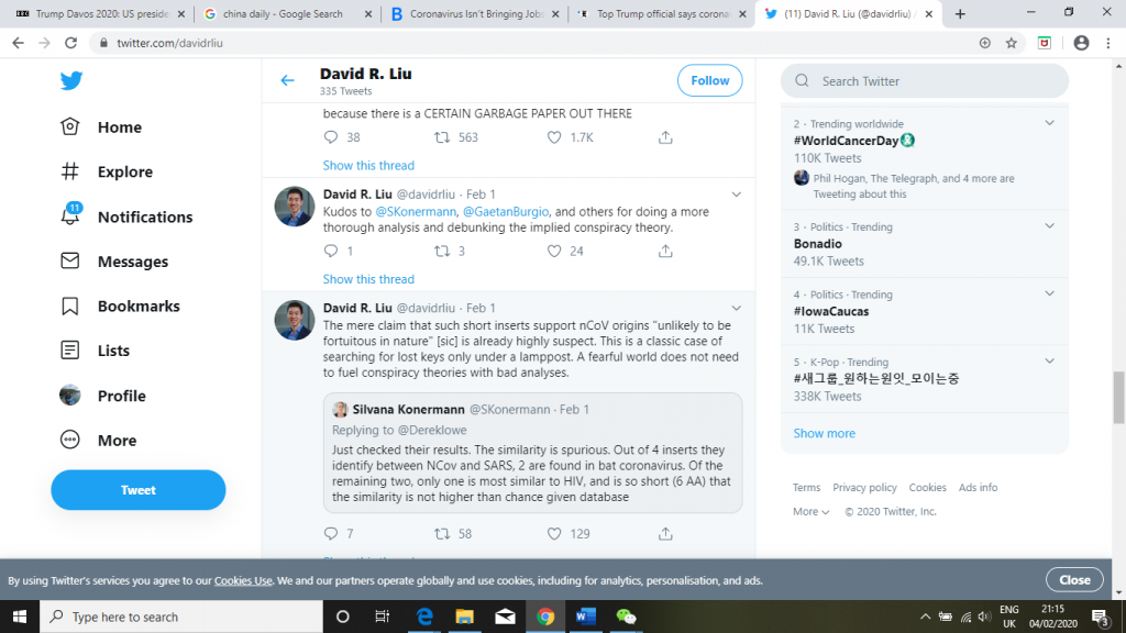 Shi has received support from leading scientists and health experts across the world, including David Liu, a chemistry professor at Harvard University, who debunked the Indian paper’s accusations, stating “the mere claim that such short inserts support nCoV origins ‘unlikely to be fortuitous in nature’ is already highly suspect.” The Indian lab’s paper, which was published on bioRxiv, a biology journal repository, was subsequently taken down on Sunday after being widely discredited.