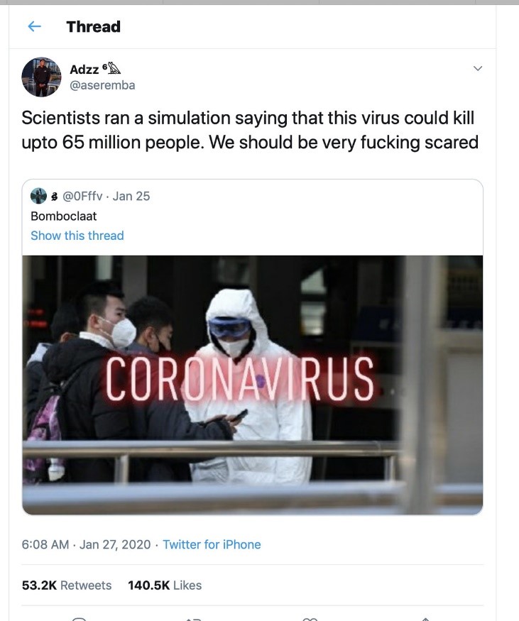 Rumours have been rife about the disease’s potential consequences, with some quoting a study by Johns Hopkins research centre that suggested a global epidemic similar to the coronavirus could cause up to 65 million deaths.