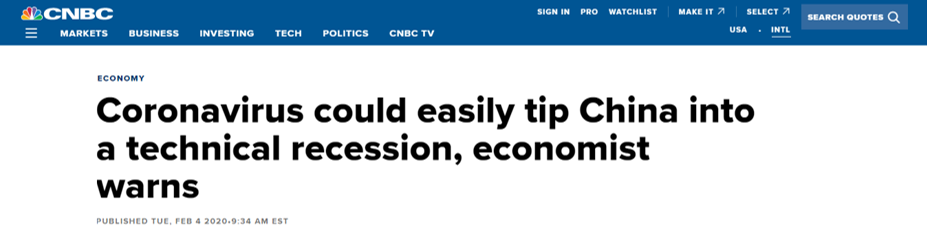 Since the start of the outbreak in December, economists and commentators have been discussing the extent to which China’s economy would be affected. On February 4, American news outlet CNBC led with a headline stating that the coronavirus “could easily lead to a recession in China”, citing the opinion of Diana Choyleva, chief economist at Enodo Economics, to support?this assessment.