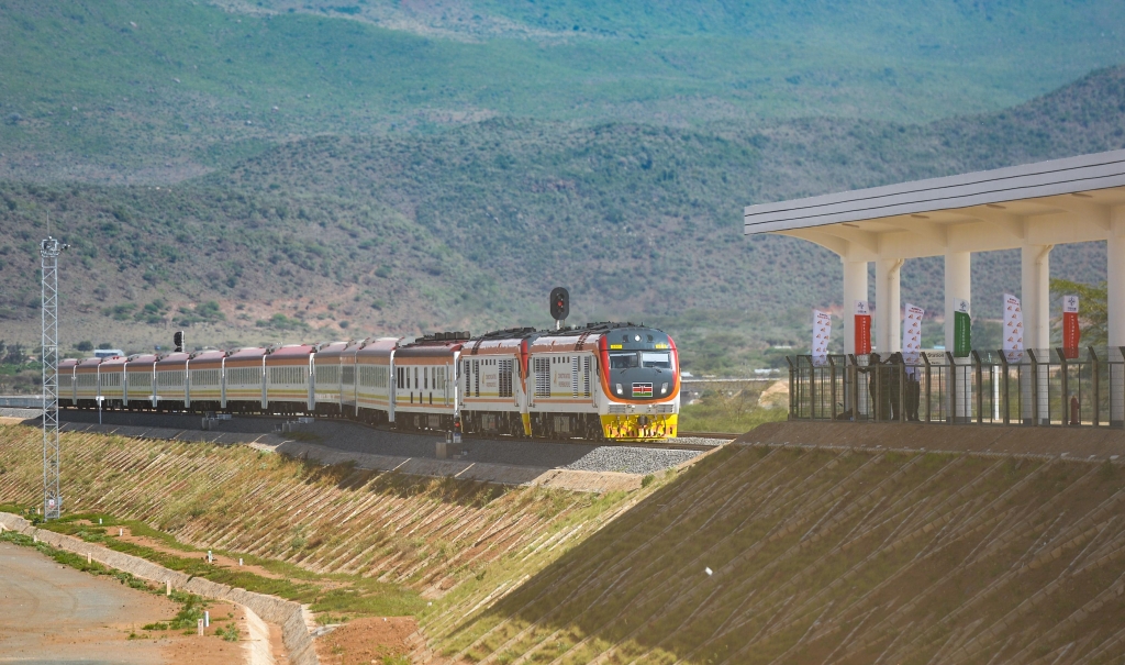 A train arrives at the Maai Mahiu Station of the Nairobi-Naivasha Standard Gauge Railway in Kenya, Oct. 16, 2019. [Photo/Xinhua]