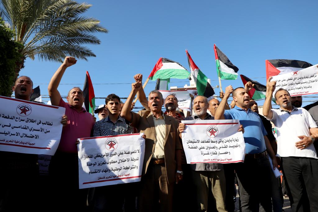 Palestinians protest against U.S. President Joe Biden’s visit, in Gaza City, on Jul. 14, 2022. (Photo/Xinhua)