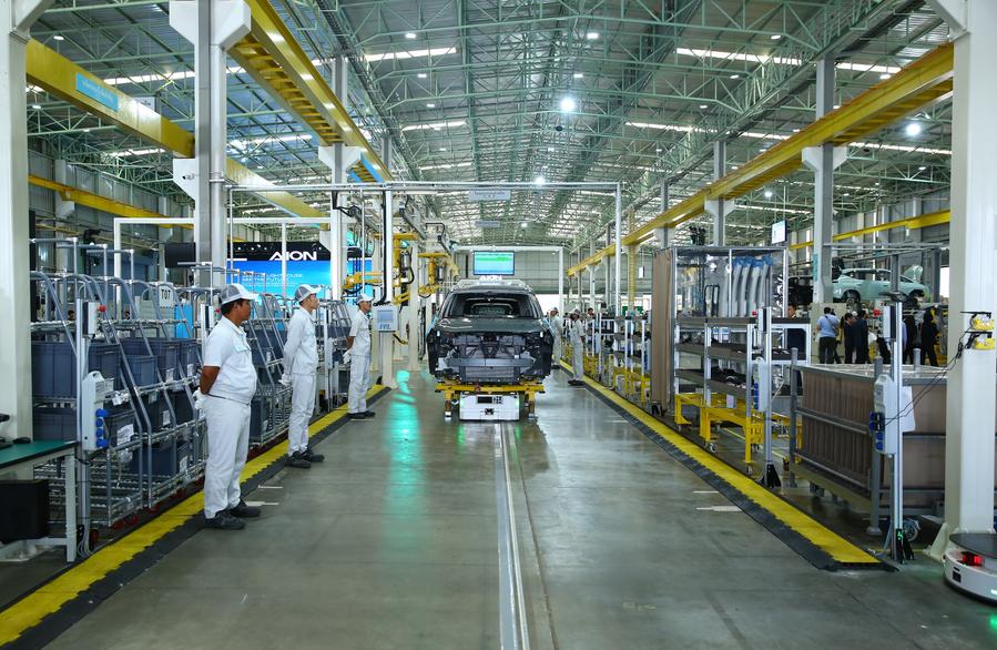 This photo taken on Jul. 17, 2024 shows a view of the electric vehicle (EV) factory of China’s carmaker GAC Aion in Rayong province, Thailand. (Photo/Xinhua)