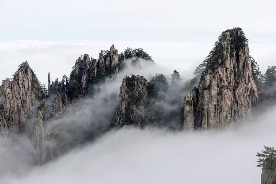 Photo taken on Mar. 10, 2021 shows cloud-shrouded mountain in the Huangshan Mountain scenic area in east China’s Anhui Province. Huangshan Mountain is famous for its five wonders of peculiar pine, peculiar stone, sea of clouds, hot spring and winter snow. (Photo/Xinhua)