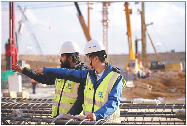 Employees of China State Construction First Building (Group) conduct inspections at the construction site of the C07 and C08 office tower in Cairo, Egypt. (Photo/China Daily)