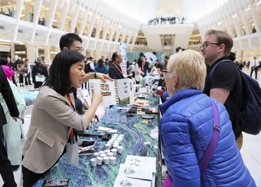 File photo shows visitors attending a Huangshan tourism promotion event at World Trade Center in New York, the United States, on May 3, 2019. (Photo/Xinhua)