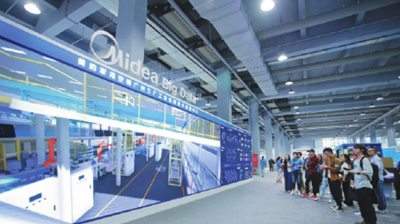 Δ?Chinese home appliances giant Midea Group showcases its strengths in smart manufacturing to visitors. (Photo/China Daily)