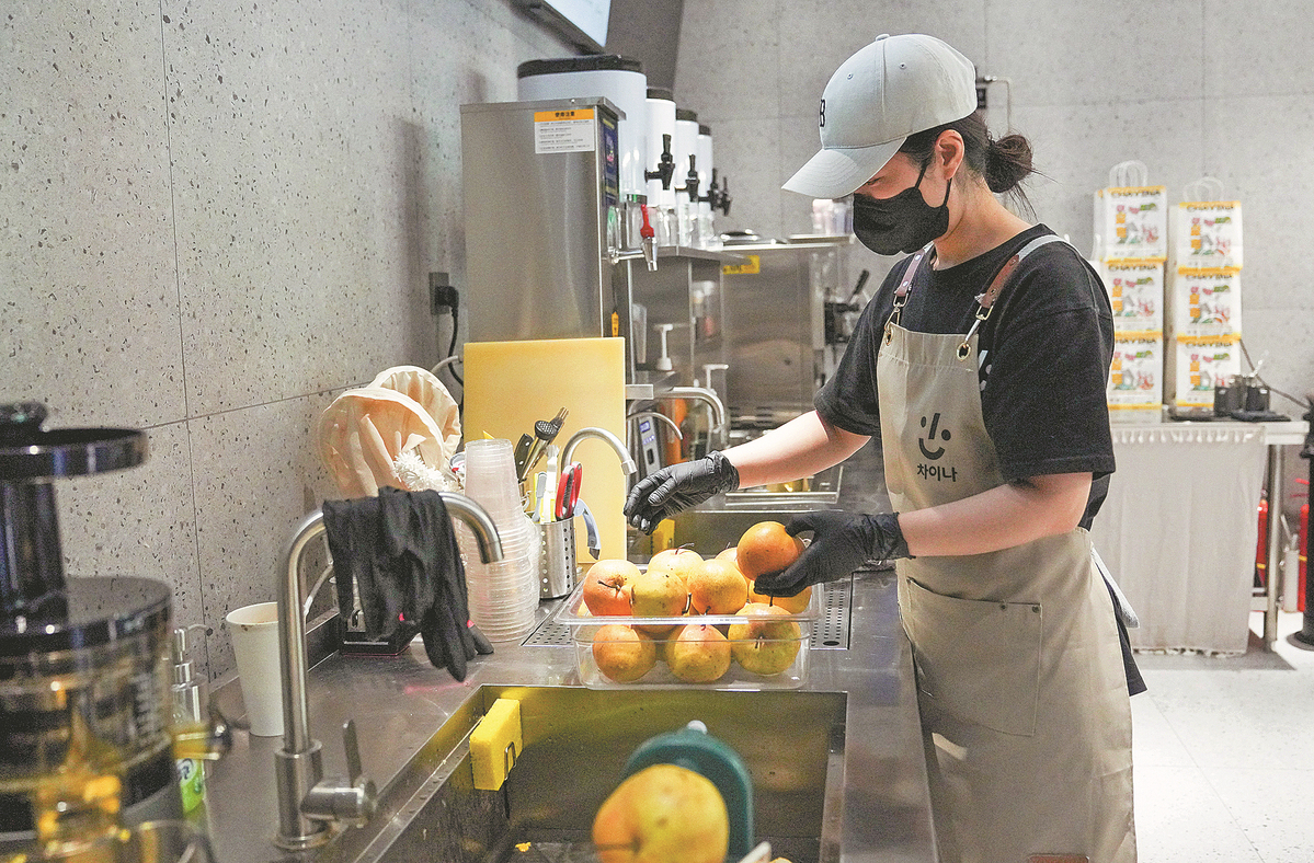A staffer prepares orders at a coffee shop in Yanji, northeast China’s Jilin Province, Apr. 4, 2023. (Photo/Xinhua)