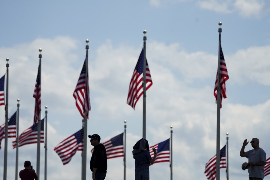 People tour the National Mall in Washington, D.C., the United States, on Apr. 11, 2021. (Photo/Xinhua)