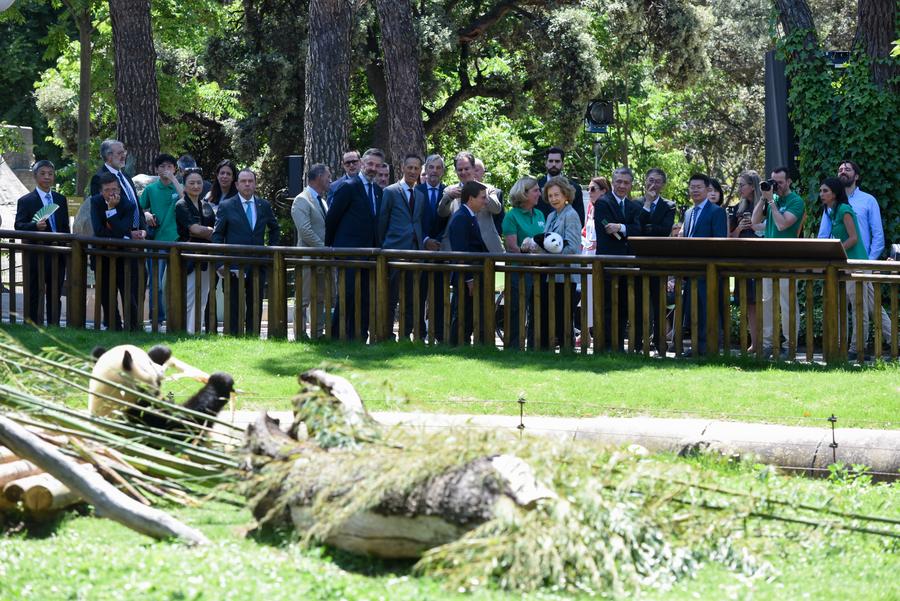 Former Spanish Queen Sofia and others watch male panda Jin Xi at Madrid Zoo in Madrid, Spain, on May 30, 2024. (Photo/Xinhua)