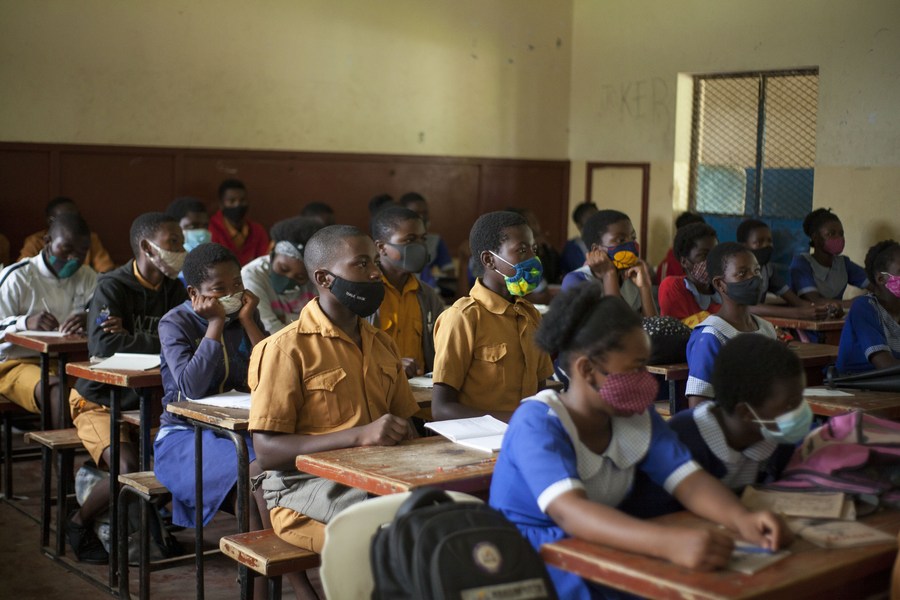 Students attend a class at a school in Blantyre, Malawi, on Mar. 9, 2021. (Photo/Xinhua)