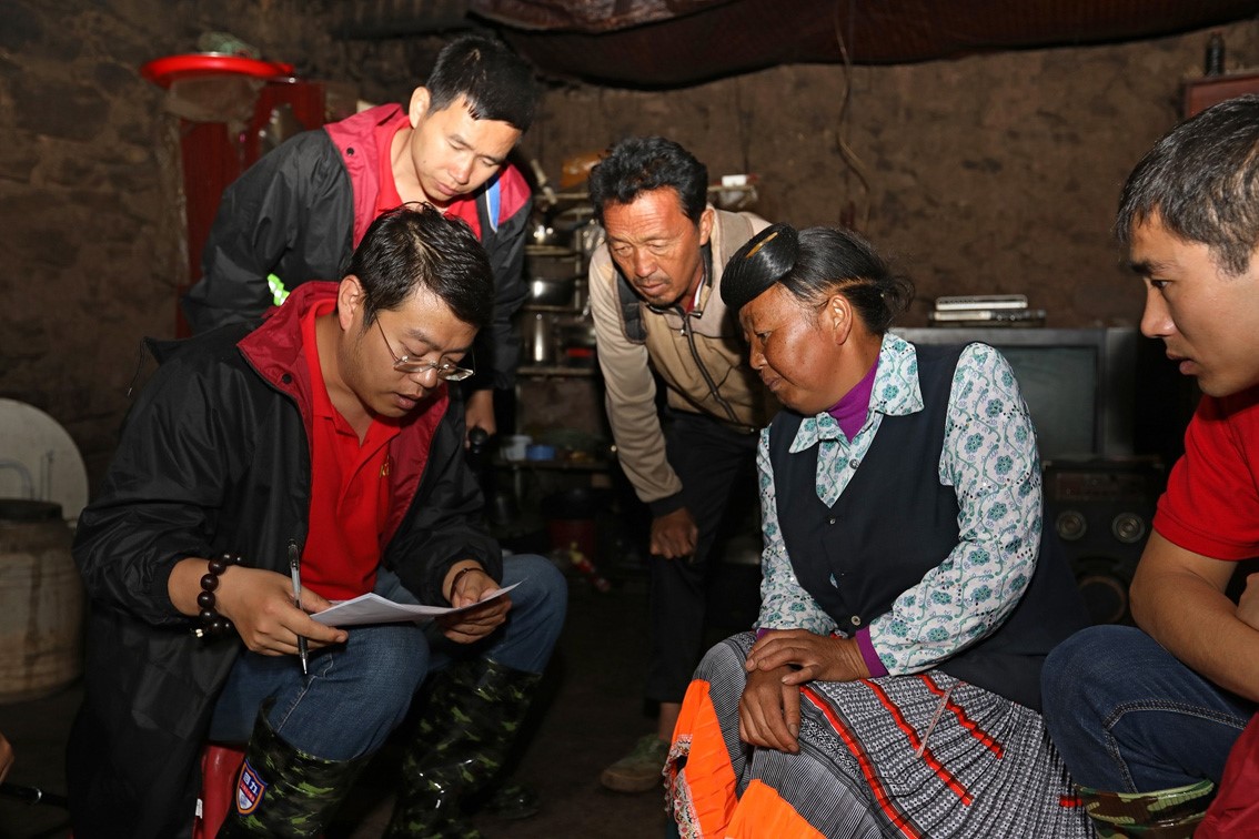 Δ?Poverty alleviation team members of Evergrande Group investigating in Dafang County, Guizhou.