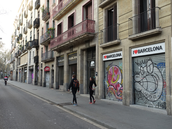 Shops close in Barcelona, Spain, on March 14, the day Spain declared a national lockdown in a bid to contain the spread of the novel coronavirus (XINHUA)