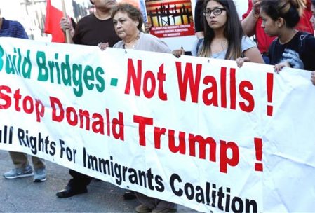 Protesters rallied against Trump’s immigration policies before his visit to Mexico prior to his election [Reuters]