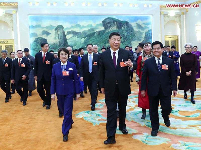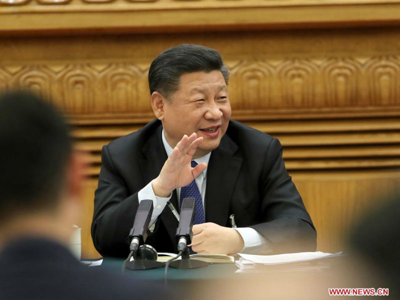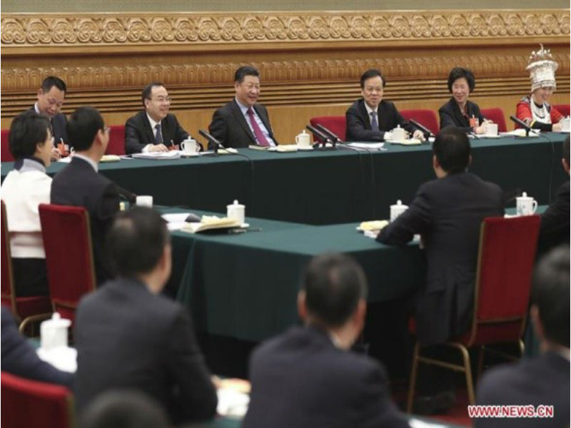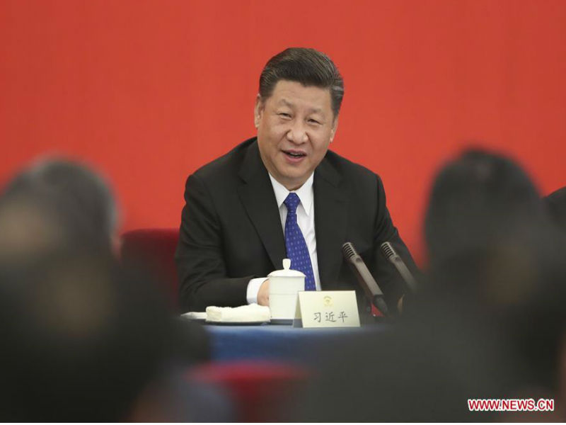 Chinese President Xi Jinping, also general secretary of the Communist Party of China (CPC) Central Committee and chairman of the Central Military Commission, attends a joint panel discussion with political advisors from the China Democratic League and the China Zhi Gong Party, those without party affiliation and those from the sector of returned overseas Chinese, at the first session of the 13th National Committee of the CPPCC in Beijing, March 4, 2018. President Xi called the system of multiparty cooperation and political consultation led by the CPC a great contribution to the political civilization of humanity.