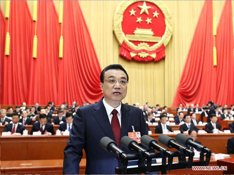Chinese Premier Li Keqiang delivers a government work report at the opening meeting of the first session of the 13th NPC in Beijing, March 5, 2018. According to a government work report, China has set its GDP growth target at around 6.5 percent for 2018, unchanged from that for 2017.