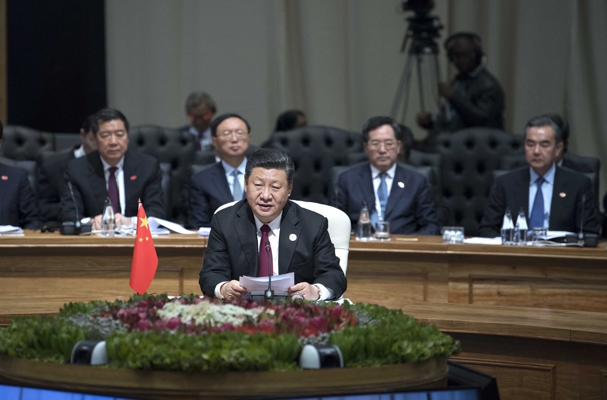 Δ?Chinese President Xi Jinping speaks at the plenary session during the BRICS Summit in Xiamen, Fujian province on September 4, 2017.?[Photo/Xinhua]