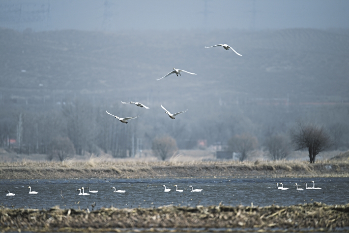 To keep the Yellow River clean, 539 river chiefs in Jungar Banner routinely do inspection tours. As the river chief of the Yellow River in Xiaotanzi Village, Qiao Xu inspects the river twice a month to check what the situation is. In recent years, he noticed an increasing number of migrant birds resting here. “More trees and grass are attracting more migrant birds. The environment is getting better,” he said.