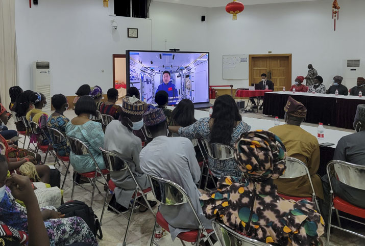 A Talk With Taikonauts event takes place in Abuja, Nigeria, on Sept. 6, 2022, during which young Africans had a conversation with astronauts working in the Chinese space station via video link. (Photo/Xinhua)