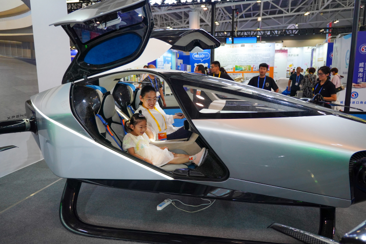 Visitors experience an electric aircraft on display at a trade expo in Linyi, Shandong Province, on Jun. 27, 2025. (Photo/Xinhua)