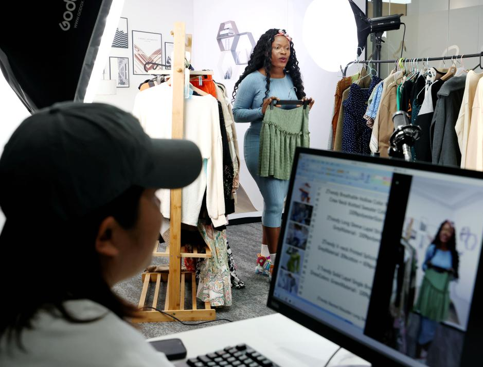A foreigner sells products via livestreaming at Xi’an International Trade and Logistics Park in Xi’an, northwest China’s Shaanxi Province, Mar. 3, 2023. (Photo/Xinhua)