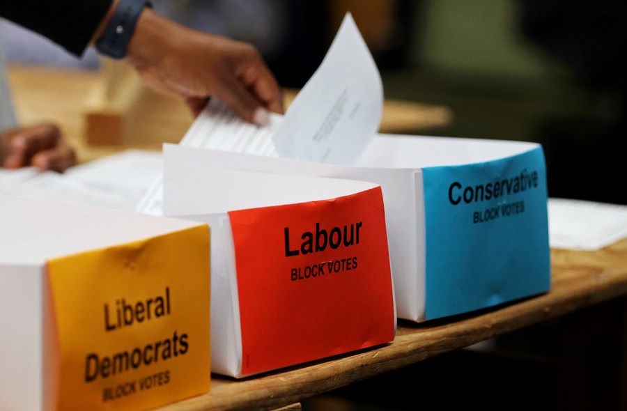 Staff count ballots for the local elections at Wandsworth, London, Britain, May 6, 2022. (Photo/Xinhua)
