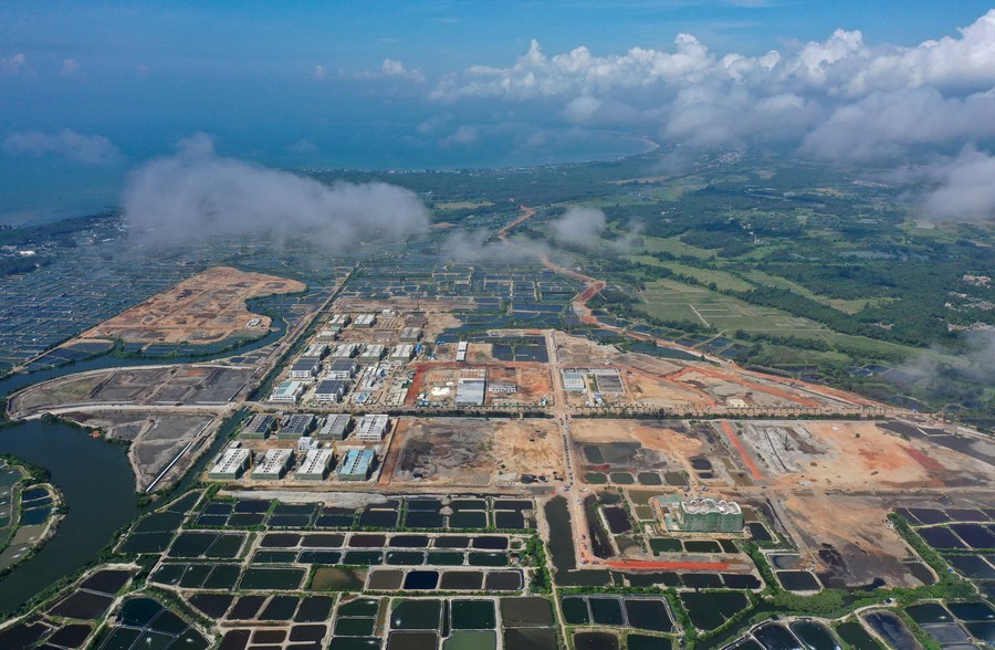 Aerial photo taken on Jun. 1, 2022 shows a view of Fengjiawan Modern Fishery Industrial Park under construction in Wenchang, south China’s Hainan Province. (Photo/Xinhua)